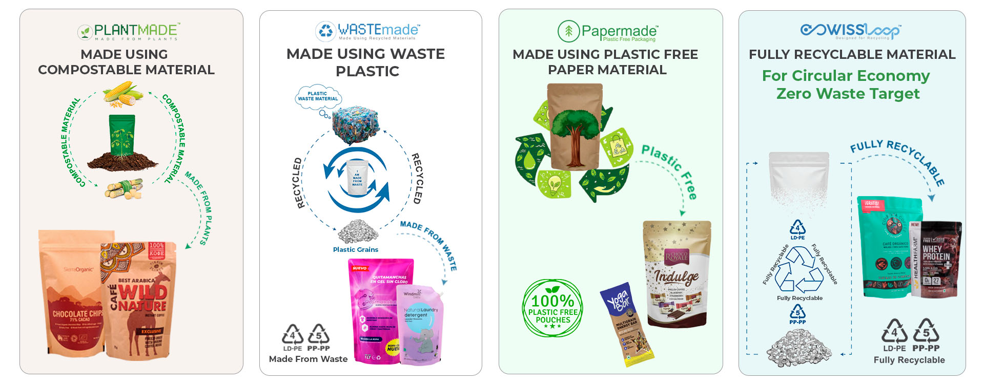 Swisspac provides innovative flexible packaging solutions including stand-up pouches, coffee bags, labels, sustainable packaging, and sealing machines trusted by global brands for over 40 years.