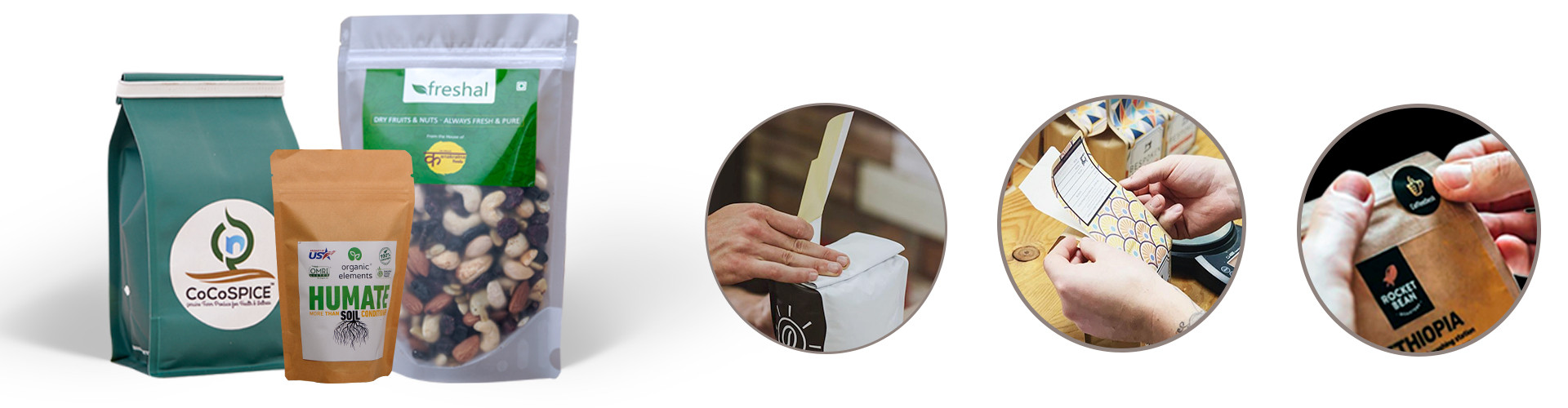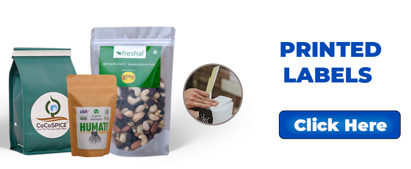 We offer two types of printed labels packaging : stock and custom printed options.