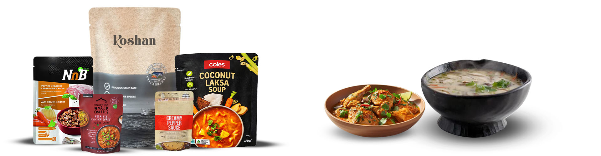 Retort pouches are specially designed packaging solutions that can with stand high temperature sterilization processes. They are widely used for ready to eat meals, sauces, soups, seafood, and pet food packaging. These pouches provide excellent barrier protection, extended shelf life, and convenient storage while maintaining the freshness and taste of the product.